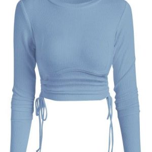 Cove Blue Ribbed Crop Top with Side-Tie Ruching