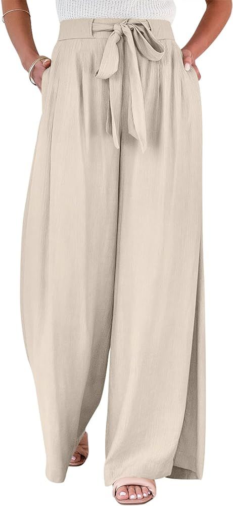 High-Waisted Wide-Leg Palazzo Pants with Tie-Waist Belt