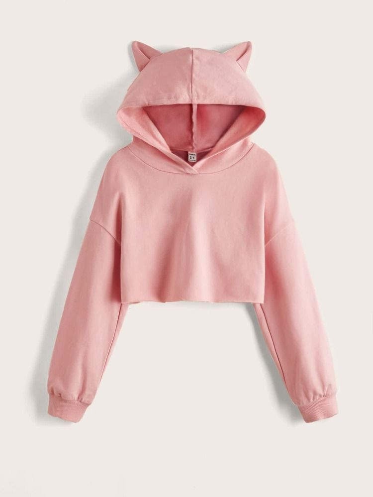 Pink Cat-Ear Cropped Pullover Hoodie