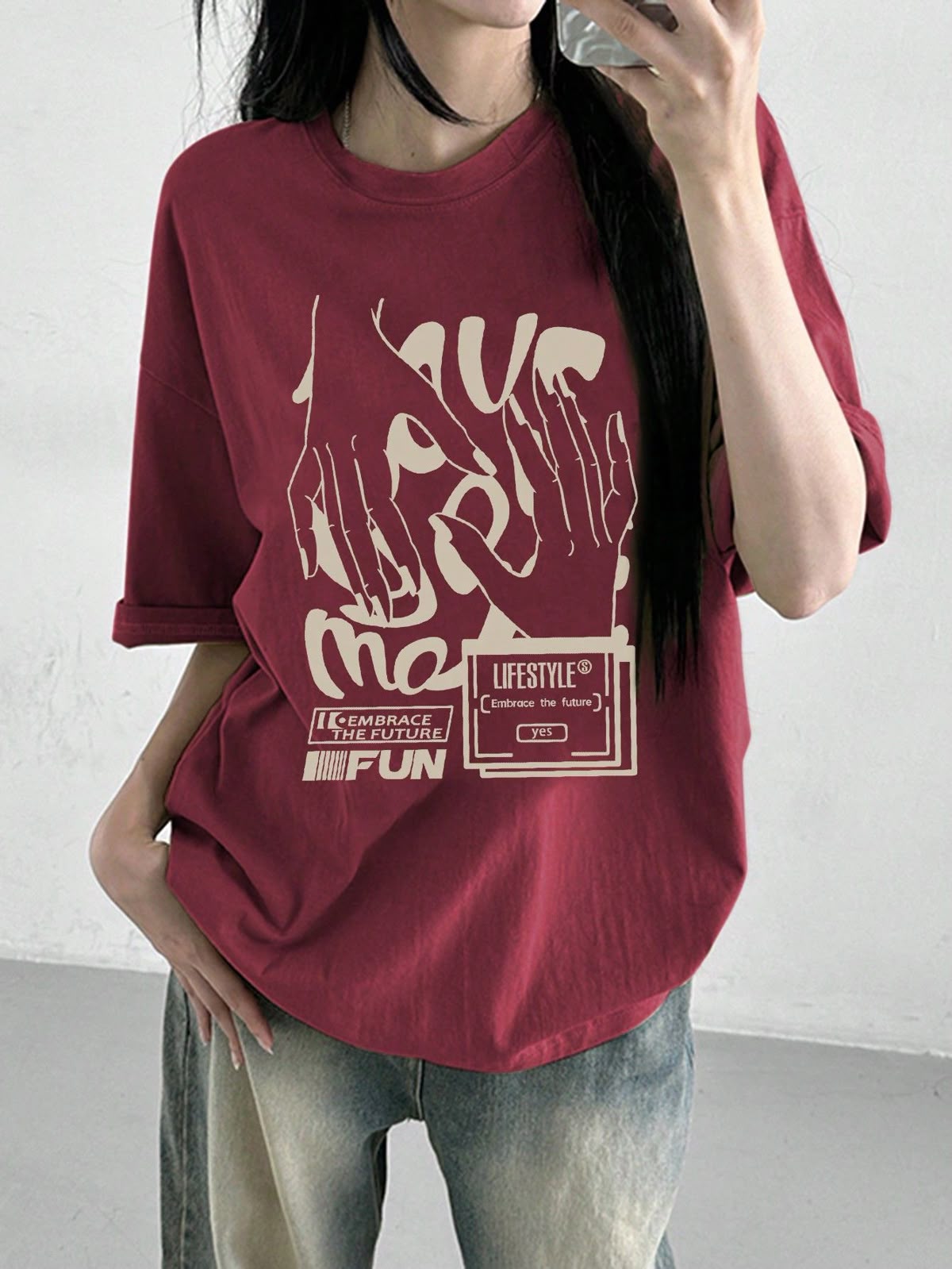 Urban Oversized Graphic T-Shirt – Burgundy “Embrace the Future” Tee