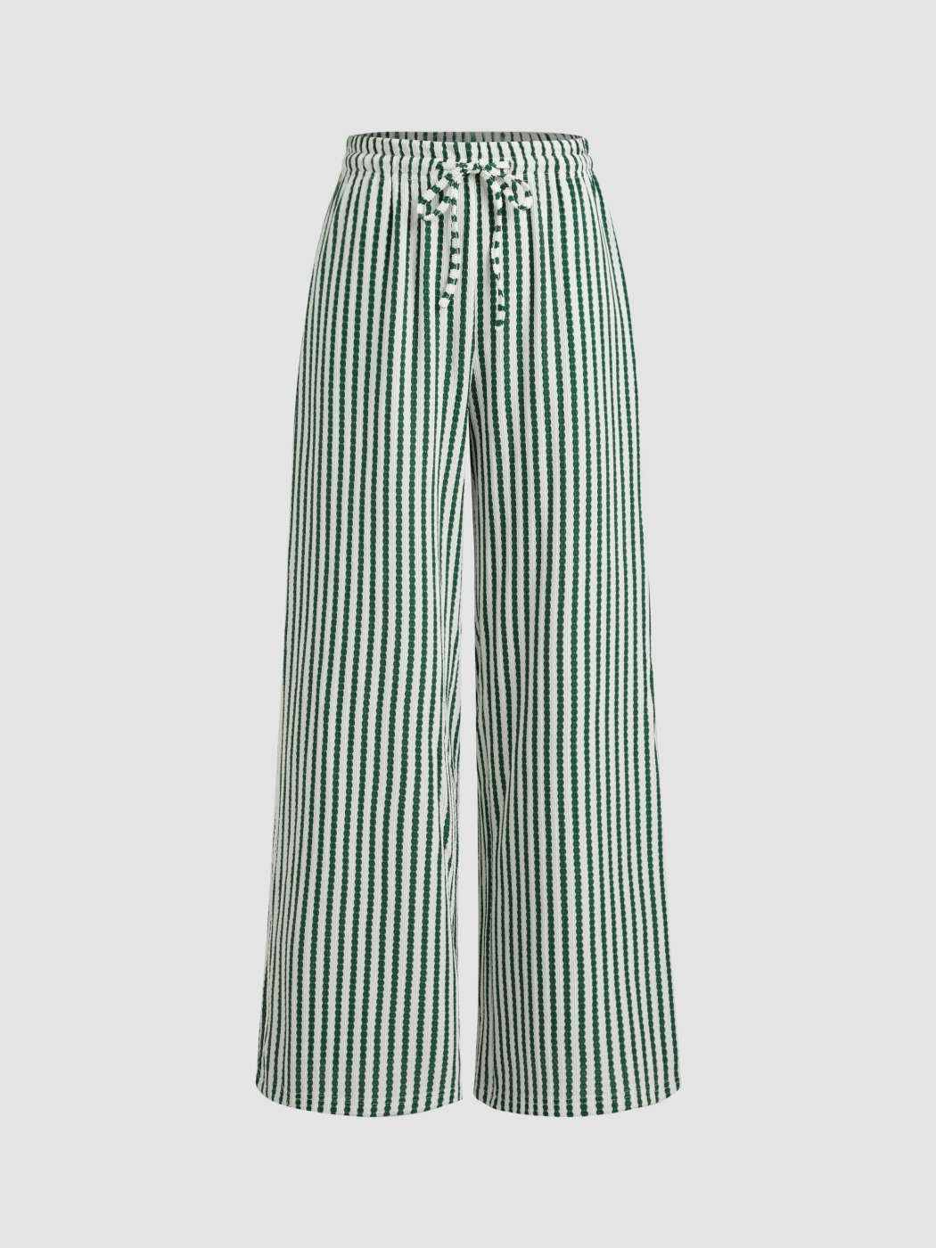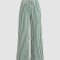 Women’s Green & White Vertical Striped Wide-Leg Trousers – High-Waisted Drawstring Palazzo Pants