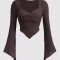 Women’s Ruched Flare-Sleeve Corset Top – Deep Chocolate