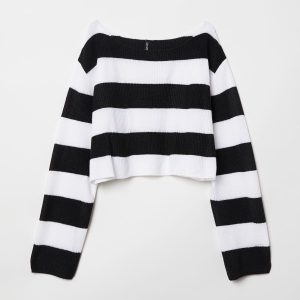 Black and White Striped Cropped Knit Sweater