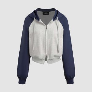 Two-Tone Raglan Cropped Zip-Up Hoodie